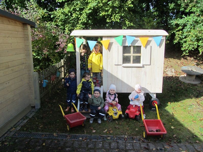 Endlich steht er in voller Pracht auf unserem Außengelände der Kleinkinder, der neue Zirkuswagen.