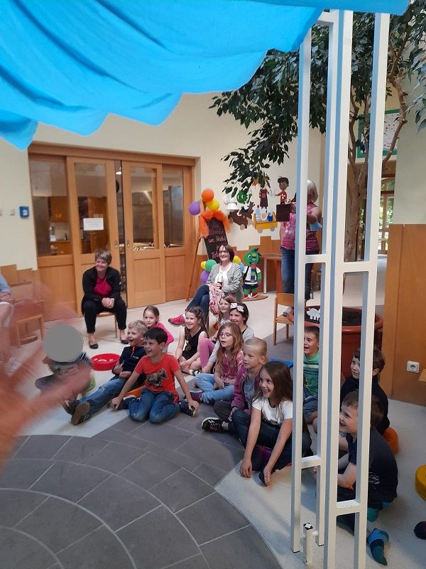 Gespannt verfolgten die Hotzenplotz-Kinder das Theater "Die gestohlene Schultüte", das ihnen einige Erzieherinnen vorspielten. Sie halfen Kasperl, die Schultüte der Prinzessin von der Hexe Warzennase zurück zu bekommen. Das war eine tolle Überraschung an der Übernachtung!