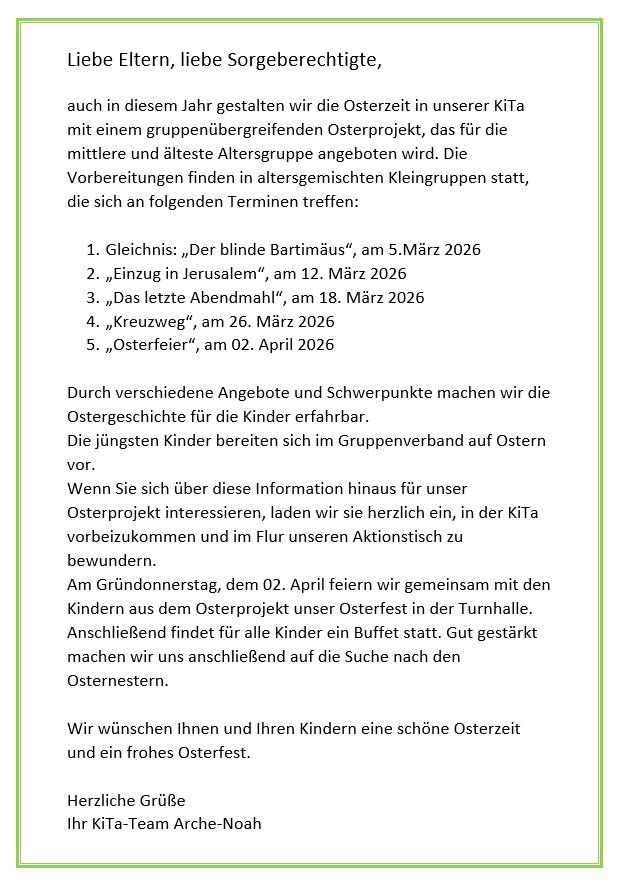 Willkommen bei der Kindertagesstätte Arche Noah