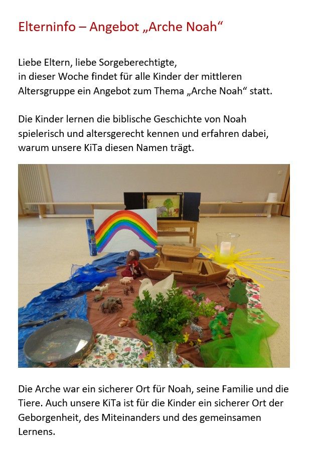 Seit dem 01.01.2026 unterstütze ich das Team der Kita Arche Noah als Hilfskraft. Es bereitet mir große Freude, Ihre Kinder in ihrem Alltag zu begleiten und gemeinsam mit ihnen die Welt zu entdecken.