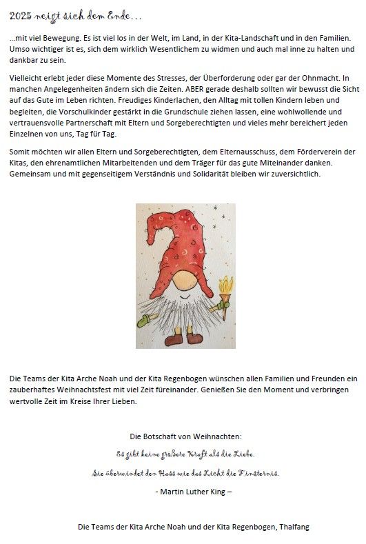 "Ein kleines Dankeschön an euch und die tolle Arbeit, die ihr leistet. Meine Tochter kommt sehr gerne in die Kita und dafür bin ich dankbar!" C.